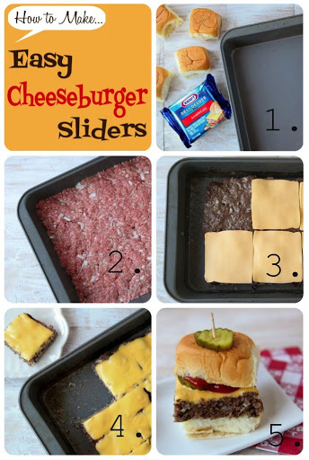 Top the meat with an even layer of sliced cheese; return pan to oven for about 2 minutes or until the cheese melts. Remove from the oven and allow to rest for a few minutes. Cut into 2-inch squares (or the size of the buns used), making 12 mini- hamburgers. Serve with dill pickle slices and ketchup. Serves 6 at 2 sliders each