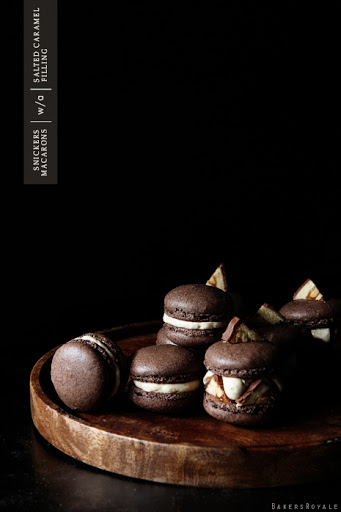 1. Slice Snickers into 1/8inch slices and then quarter each slice. Place quartered slices around perimeter onthe bottom of one shell. Pipe filling in the middle and place a second shell on top with bottom side down to create a sandwich effect