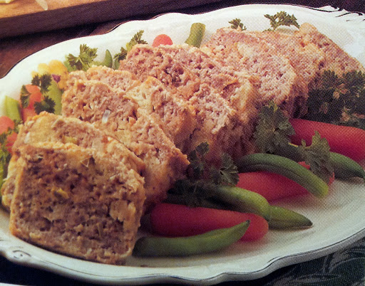 Pat into an ungreased 5 3/4" x 3" x 2" loaf pan. Sprinkle with parmesan cheese. Bake, uncovered, at 350 degrees for 1 hours or until meat is no longer pink and a meat thermometer reads 165 degrees; drain.
