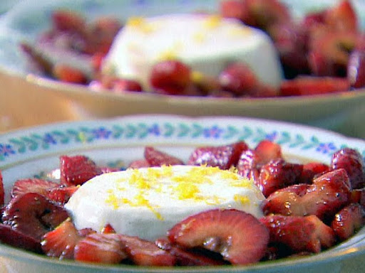 To serve, run a small knife around each dessert in the ramkein and dip the bottom of each ramekin quickly in a bowl of hot tap water. Invert each ramekin onto a dessert plate and surround the panna cotta with strawberries. Dust lightly with freshly grated lemon zest and serve.