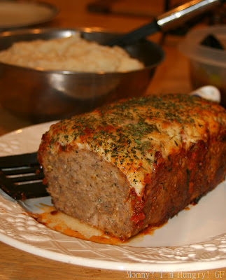 Are you tired of your same old meatloaf recipe? If so give this one a try. I made it gluten free but you can use regular breadcrumbs if you're not. The flavors were great in this with the Italian flavors. We particularly like how the meatloaf held up, it wasn't really dense, it was tender and stayed together, it didn't crumble when sliced. I was also thinking next time I will try layering the meatloaf with some sauce and cheese in the middle for more Mmm.