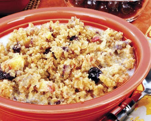 Beat together the butter and sugars. Mix in the eggs, milk, CINNAMON, salt, baking powder and oats. Beat well. Add the fruit. Pour into a greased 8-inch square pan. Cover with foil and refrigerate overnight. In the morning, preheat the oven to 350°. Uncover the pan and sprinkle with VANILLA SUGAR. Bake in preheated oven until firm, about 45 minutes. Serve hot with warm milk, if desired. We also tried baking the oatmeal right away without refrigerating overnight, and that tasted good too!