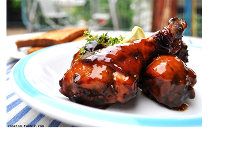 1. Crush lavender with a mortar and pestle. Combine all ingredients for the marinade in a large bowl. Mix well! Add and coat chicken drumsticks with marinade.