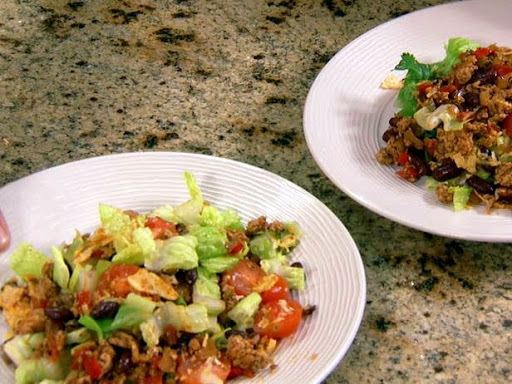 Toss chopped lettuce, cherry tomatoes, tortilla chips, cheese, cilantro, sautéed chicken and bean mixture all in a large bowl and dress with the yogurt and salsa.