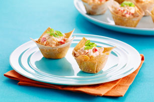 PLACE 1 won ton wrapper in each of 24 mini muffin pan cups sprayed with cooking spray, extending edges of wrapper over rim of cup. Fill with shrimp mixture.