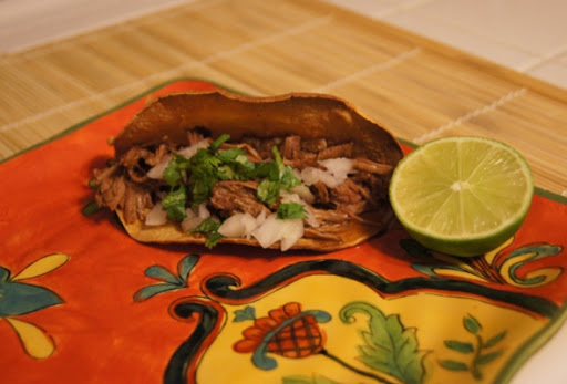 "One of my favorite things is beef barbacoa. It is a slow cooked Mexican beef dish that simmers in chiles, onions, garlic, and oregano and comes out tender and delicious, perfect for any taco, burrito, or meal on it’s own served over rice. My favorite way to eat it is with simple oven baked crispy taco shells. Warm a corn tortilla in the microwave, spray it with a little bit of cooking spray, and drape over the oven racks creating your own healthy, crispy taco shells. Serve with a little bit of cilantro, onion, and your favorite salsa if you want more heat. This recipe is based off of the beef barbacoa on Skinnytaste. This would also be delicious with pork or chicken. Point value is for the beef only." Slender Kitchen