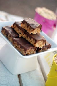 Melt chocolate and butterscotch chips together in a microwave safe bowl, 30 seconds at a time. Stir and heat in 30 second increments until melted. (Or melt over a double boiler.) Spread evenly over Rice Krispies mixture. Allow to cool and set before cutting.