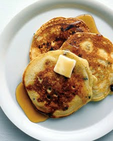 with a spatula and cook until browned on underside, 1 to 2 minutes more. Transfer pancakes to a warm plate or baking sheet and cover loosely with foil. Repeat with more melted butter and remaining batter (makes about 12). Serve pancakes topped with maple syrup and butter, if desired
