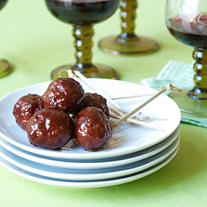 Chipotle-Barbecue Sausage Bites: Substitute 2 (16-oz.) packages cocktail-size smoked sausages for meatballs. Proceed with recipe as directed, decreasing water to 1/2 cup and simmering mixture 15 minutes. Makes 12 to 14 appetizer servings. Prep: 10 min., Cook: 20 min.