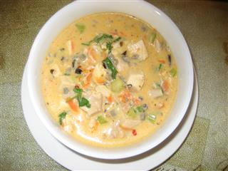 This is a Creamy, Spicy Soup that is very flavorful and hearty. The accent of Cilantro and Pepper Jack Cheese put a little zip in this Soup recipe!
