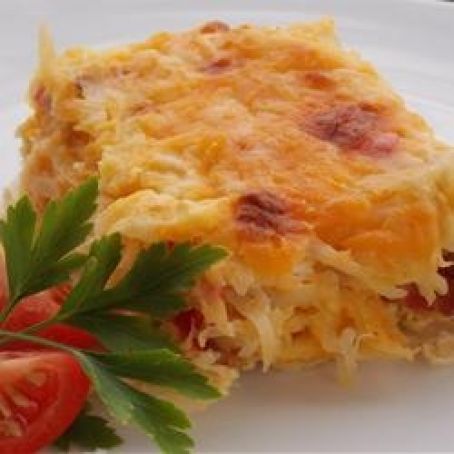 Pillsbury Grand biscuits, hash browns, bacon, eggs, minced onion, Cheddar, and seasonings combine to make this ideal breakfast for a crowd.