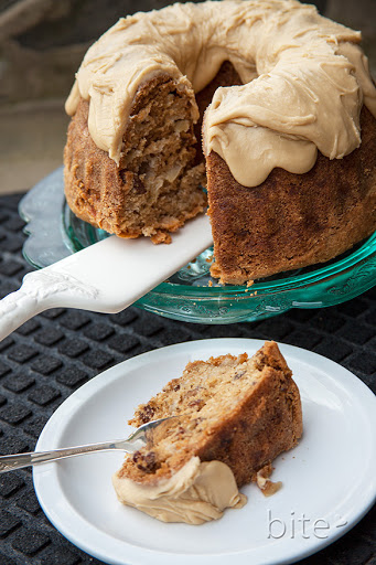 Make sure that your cake is completely cooled or the glaze will run off. Spoon the glaze over the cake to ensure that you cover as much of the cake as possible.