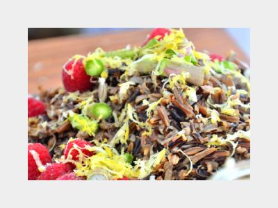 Gently TOSS cooked rice, asparagus, lemon zest, scallions, coconut, sea salt and pepper together in a large bowl. Place in the refrigerator for 20 minutes.