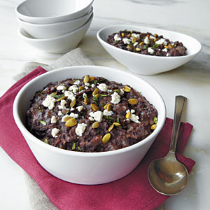 3. Stir in lime juice. Mash bean mixture with a potato masher until slightly thick. Sprinkle with queso fresco, cilantro, and pumpkinseed kernels.