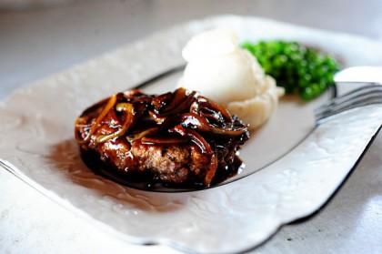 Combine all the ingredients for the meat mixture and knead until all combined. Form into 4 to 6 oval patties, then make lines across the patties to give them a "steak" appearance.