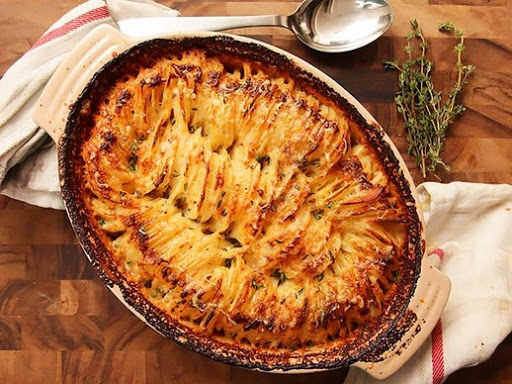 - 2 pounds russet potatoes, peeled and sliced 1/8th-inch thick on a mandoline slicer (about 4 medium)