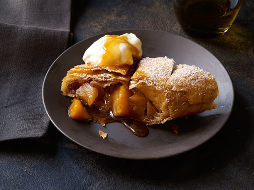 Beat the heavy cream in a bowl with a mixer on medium speed until soft peaks form, then gently fold in some of the reserved caramel (you may need to whisk the caramel first to loosen). Dust the strudel with confectioners' sugar and cut into pieces. Serve with the caramel whipped cream and more caramel; sprinkle with salt.