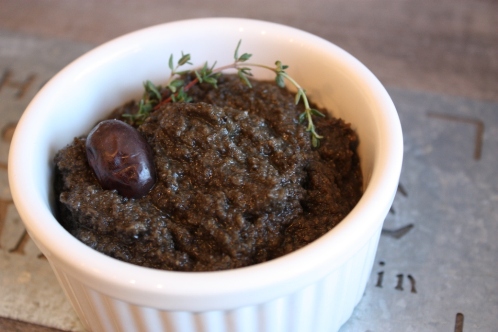 *Combine* the ingredients in the bowl of a mini food processor. *Pulse*, scraping down the bowl as needed, until the olives are pureed. *For* a slightly thinner consistency, add additional olive oil drop by drop (wasn't necessary). *Taste* and add additional herbs, pepper or lemon juice, as desired. *Cover* and store in the refrigerator until needed (a Ball jar works well).