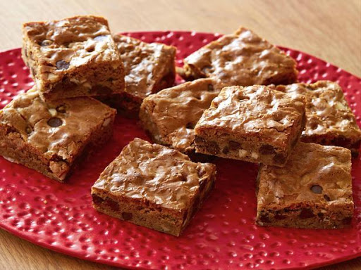 Bake until the top cracks slightly and is firm to the touch and a skewer inserted into the center comes out with moist pieces clinging to it, 24 to 27 minutes. Remove to a wire rack and let cool completely. Remove the bars from the pan using the parchment handles, transfer to a cutting board and cut into 2-inch squares.