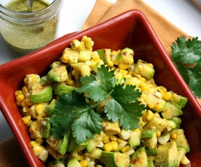 Grilled Zucchini Corn Salad with Cilantro Lime Dressing