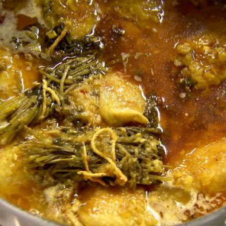 Slice the preserved lemon peel into thin slices and add to the sauce along with the olives, parsley and cilantro. Reduce until the sauce is just a little thick. This shouldn't take more than 5 minutes at most.