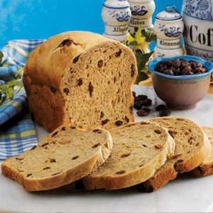Toss raisins with 1 tablespoon flour; set aside. In bread machine pan, place the coffee, oil, egg, salt, sugar, spices, yeast and remaining flour in order suggested by the manufacturer. Select basic bread setting. Choose crust color and loaf size if available.