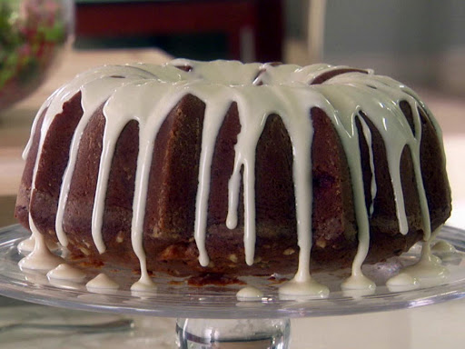 For the icing: In a food processor, combine the powdered sugar, heavy cream, cream cheese, 3 tablespoons water, and vanilla. Process until smooth, adding more water, 1 teaspoon at a time, until the icing is pourable. Spoon the icing over the cake and allow to set for 20 minutes before slicing.