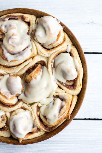 Eggnog Cinnamon Rolls with White Chocolate Chips