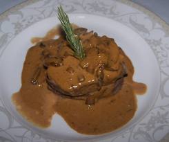 In a small 8- to 10-inch saute pan, heat 1 tablespoon butter over medium heat for 1 minute. Add the tenderloin steaks, sprinkle with a little salt and pepper, increase heat to medium-high and saute exactly 2 minutes on each side. Remove them to a plate and chill in a refrigerator for 5 minutes.