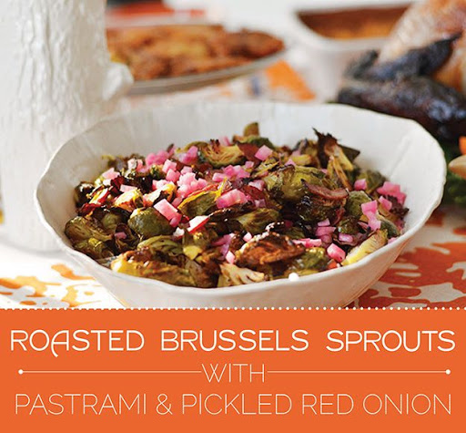 ROASTED BRUSSELS SPROUTS WITH PASTRAMI AND PICKLED RED ONION