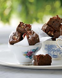 Scrape the batter into the prepared pan and sprinkle the bacon and pecans on top. Bake for about 50 minutes, until the brownies are set around the edges but slightly wobbly in the center; a toothpick inserted into the center should have some batter clinging to it. Transfer the pan to a rack and let the brownies cool completely. Lift the brownies out of the pan using the parchment paper. Cut into squares or rectangles and serve.