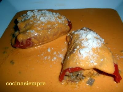 Para este plato procuraremos utilizar pimientos del piquillo que asaremos , dejaremos sudar en una bolsa de plástico y pelaremos después conservándolos enteros. También podemos usar pimientos en conserva.