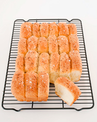 4. Preheat the oven to 350. Sprinkle the rolls with the caraway seeds and sea salt and bake in the center of the oven for 50 minutes, until puffy and golden. Transfer the pan to a rack and let cool for 15 minutes. Invert the rolls onto a platter, then invert them again onto the rack. Let cool slightly before serving.