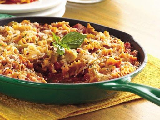 Ground beef can be used for the sausage. Add garlic toast and a Caesar salad for an easy, tasty dinner in minutes!