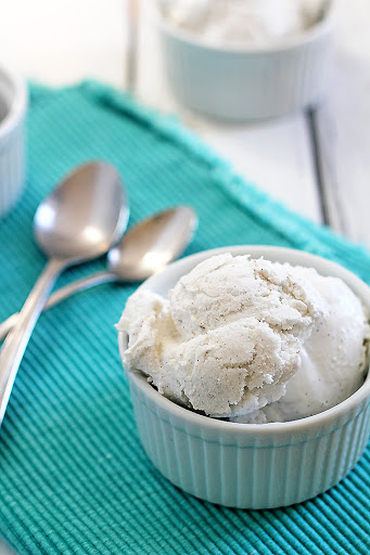 Slice open the vanilla bean pod, scoop out the seeds, and add to the food processor. Process until seeds are incorporated and you have achieved your desired ice cream texture.