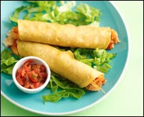 Bake for 14 - 16 minutes, until crispy. Allow taquitos to cool for 5 minutes. If you like, dunk in enchilada sauce, salsa, or sour cream!