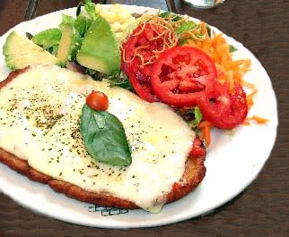 MILANESA NAPOLITANA SOBRE COLCHON DE MANZANA