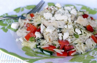 Cook orzo according to package directions. Drain and rinse with cold water until pasta feels cool to the touch. Drain and place in a large salad bowl.