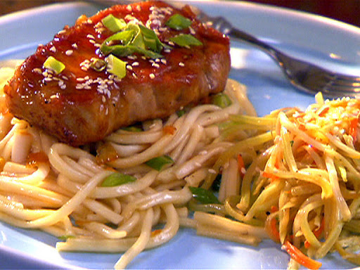 Pork Chops with Orange Soy Glaze and Udon Noodles