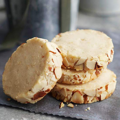 Divide dough in half. Shape each half into a 7- to 8-inch roll. Roll each roll of dough in 2/3 cup almonds. Wrap each roll in plastic wrap or waxed paper. Chill about 6 hours or until dough is firm enough to slice.