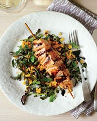 Gingered Salmon with Grilled Corn and Watercress Salad
