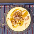 Just before serving, sprinkle desserts with coconut and drizzle with honey.