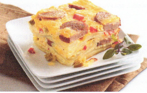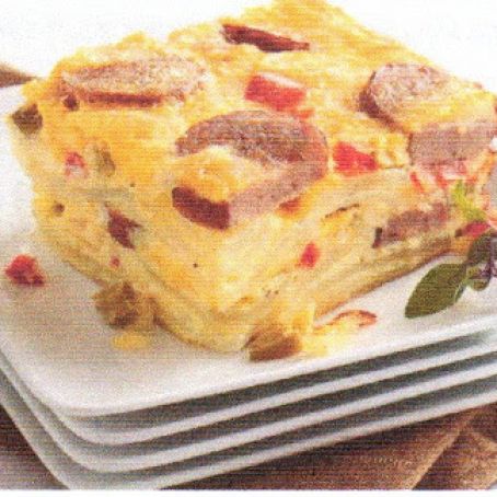 3. In large bowl, beat eggs and milk with wire whisk. Pour over layers in baking dish. Cover; refrigerate 8 hours or overnight but no longer than 24 hours.