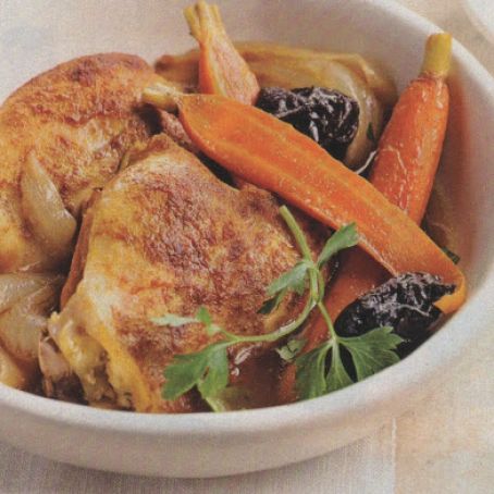 Cover and cook on low-heat setting for 8 to 10 hours on high-heat setting for 4 to 5 hours. Remove chicken, fruit, and vegetables from cooker with a slotted spoon. Spoon some of the cooking juices on each serving.