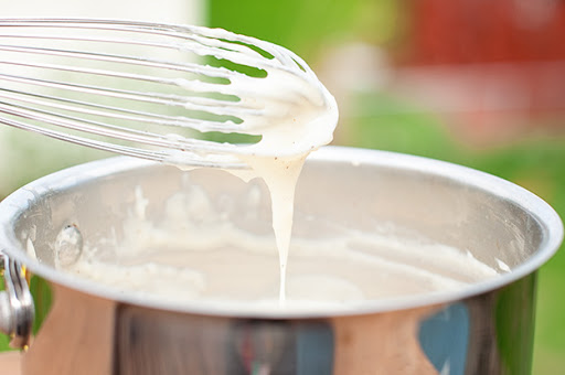 Melt the butter in a small sauce pan over medium-low heat. When melted, whisk in the flour and continue whisking until smooth and bubbly. Remove from the heat and slowly whisk in the chicken broth and milk. Return to the heat and bring to a gentle boil, whisking constantly, until the soup thickens. Add salt and pepper to taste.