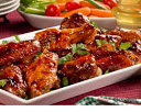 In a large bowl, combine remaining ingredients, mixing well. Reserve 1/2 cup mixture; set aside. Add wings to remaining mixture and toss until evenly coated.