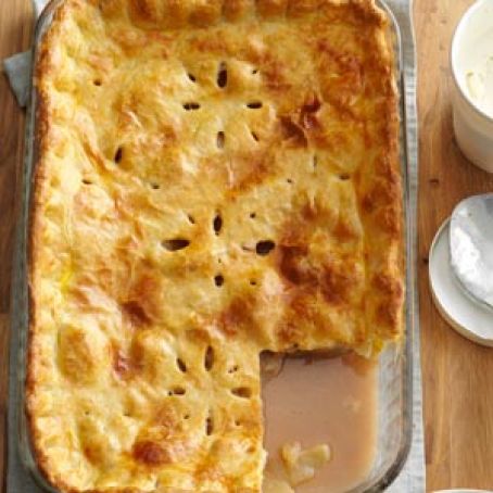 Preheat oven to 375°F. For filling, in a large bowl, toss apples with lemon juice. In a small bowl, combine sugars, flour, cinnamon and nutmeg; add to apple mixture and toss to coat. Transfer to a 13x9-inch baking dish; dot with butter.