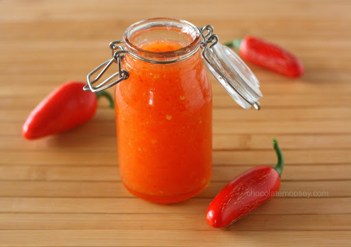 In a small bowl, combine the cornstarch and 2 Tbsp water until smooth. Add to the pepper mixture and simmer for another few minutes or until the mixture is thickened slightly. It’s still going to be a little bit runny. The cornstarch is added to help suspend the pepper and garlic bits rather than have them sink to the bottom.