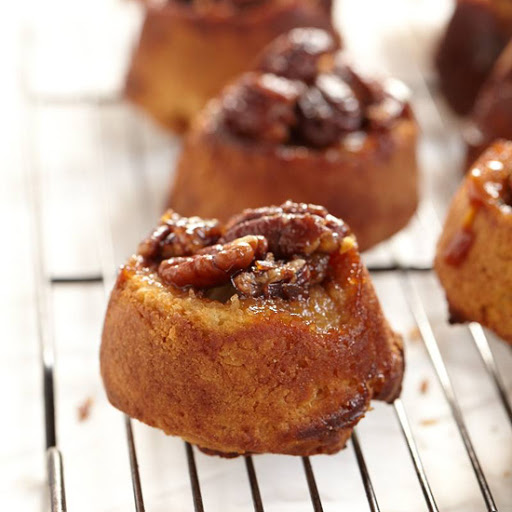 Divide the maple syrup and the remaining 2 tablespoons of melted butter among the cups. Scatter the pecans in the cups and top with the dough pinwheels. Bake for about 18 minutes, until golden; place a baking sheet below to catch any drips. Invert a rack over the rolls and invert them onto the rack. Replace any pecans that get stuck in the cups and let cool for 5 minutes before serving.