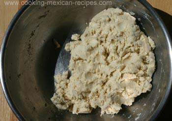 Put the masa, salt, and garlic powder in a large bowl and combine the dry ingredients.Then add the corn oil and mix with your hands. Now add the chicken broth 1/2 cup at a time.